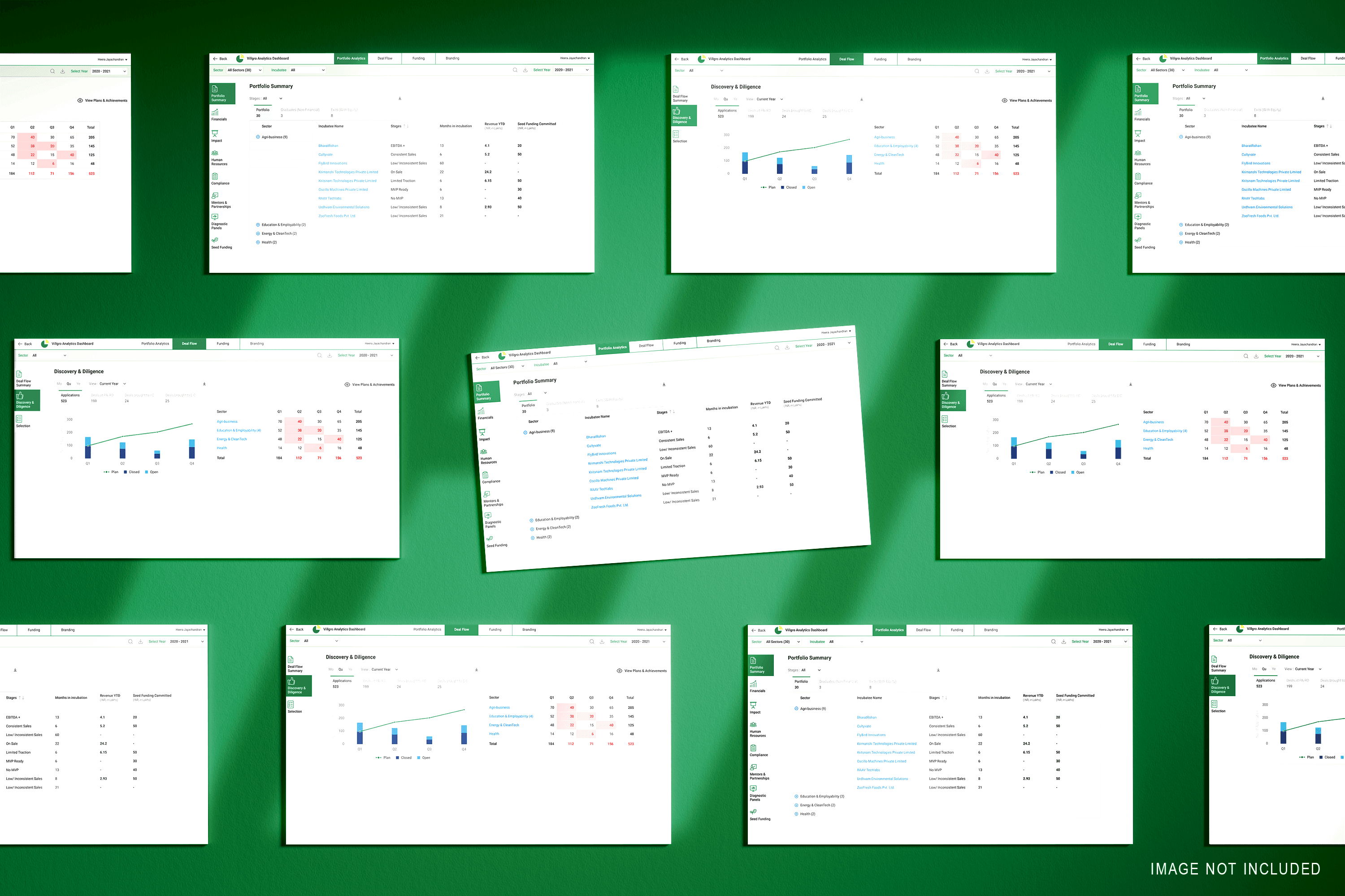 We designed a structured analytics experience with sector-level views, incubatee-specific drilldowns, and clear visual representations of revenue, profit, fundraising, recruitment, and attrition—supporting both high-level oversight and detailed analysis.